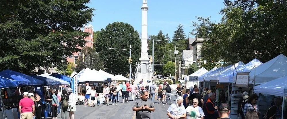 If you're visiting in late August, ArtFest transforms downtown into a massive outdoor gallery. More than 4,000 attendees browse 50+ art, craft, and food vendors lining Main Street and Market Street, surrounding the monument on the Square.